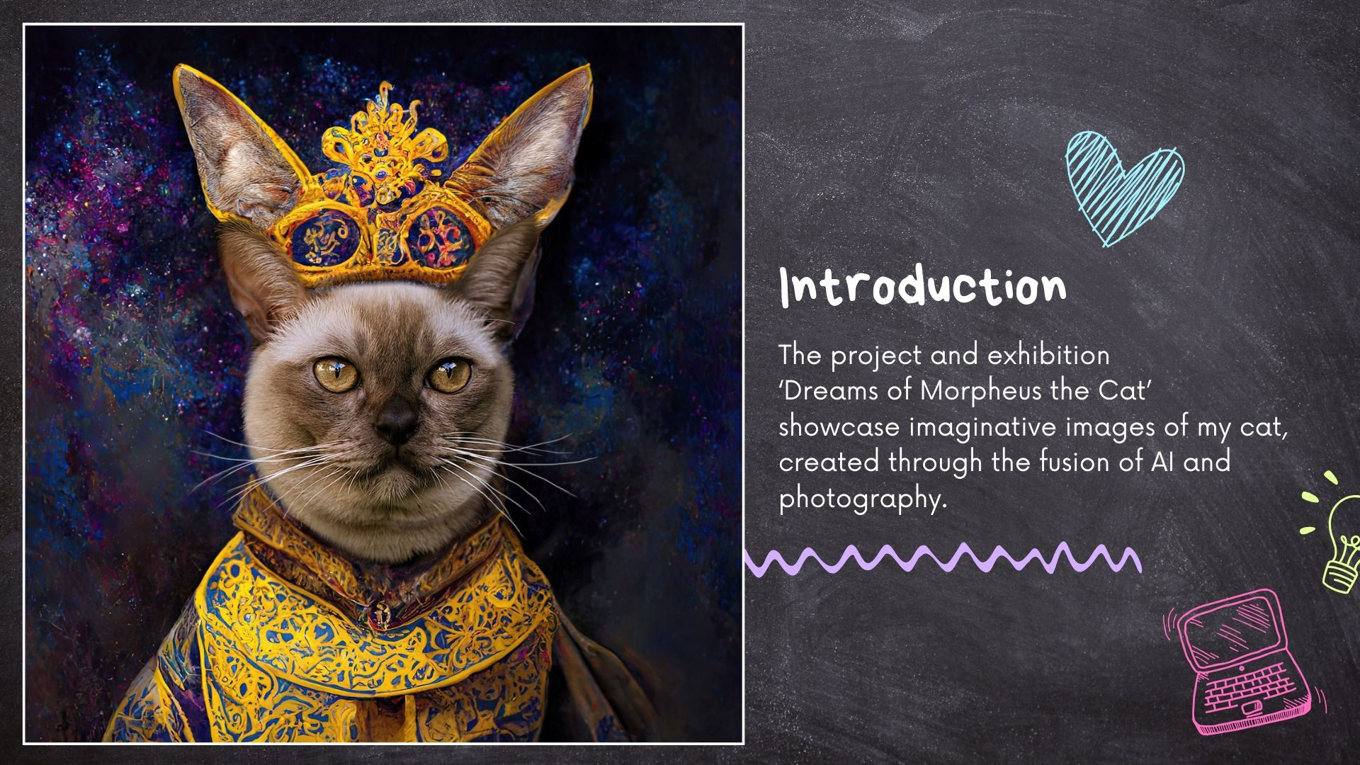 The project and exhibition ‘Dreams of Morpheus the Cat’ showcase imaginative images of my cat, created through the fusion of AI and photography